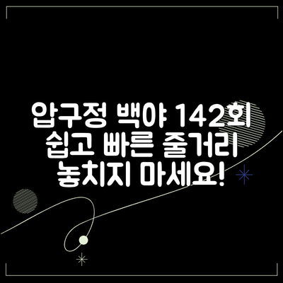 이번 압구정 백야 142회 줄거리에서는 주요 사건들이 전개되며 시청자들에게 큰 기대를 안겼습니다. 다음은 사건을 단계별로 정리한 내용입니다.