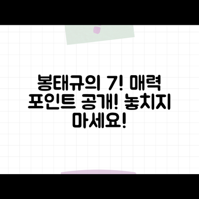 여러분도 이렇게 봉태규의 매력을 3단계로 포착하고 나면, 그의 팬이 되고 싶은 마음이 저절로 생길 거예요!